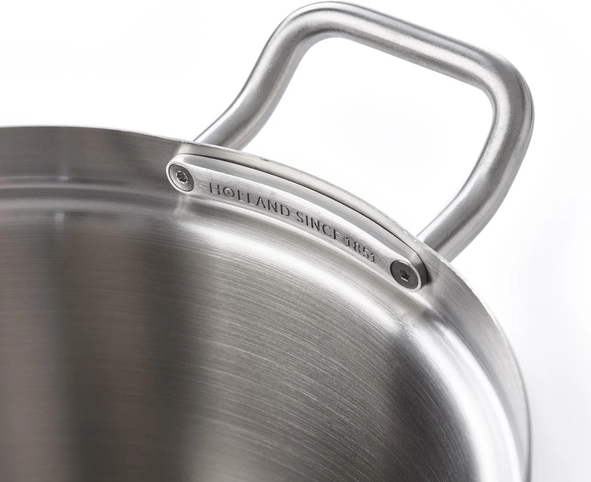 De pannen beschikken over een veilig afgietsysteem waardoor je gemakkelijk en veilig je pannen kunt afgieten. De deksels kunnen met een draai onder de grepen worden vergrendeld. Zo kunnen vloeistoffen veilig worden afgegoten of uitgeschonken worden via de schenktuit in de rand. Veilig afgieten was nog nooit zo makkelijk!