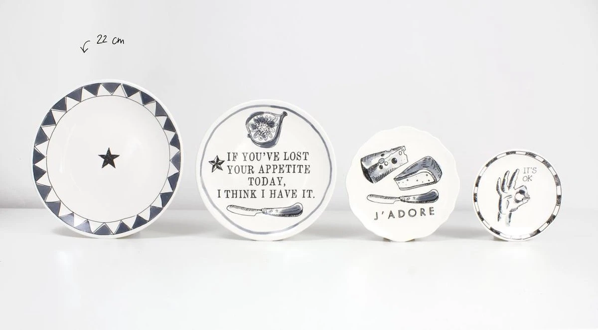 De zwart-witte tegenhanger van het bekende Blondservies is er. BLOND X NOIR. Herkenbaar handcrafted, met een ingetogener uitstraling. Tót je de tekst leest op het bord: I licked it so it’s mine. Nu dus óók Blond Amsterdam voor wie minder van het bonte en blozende is.