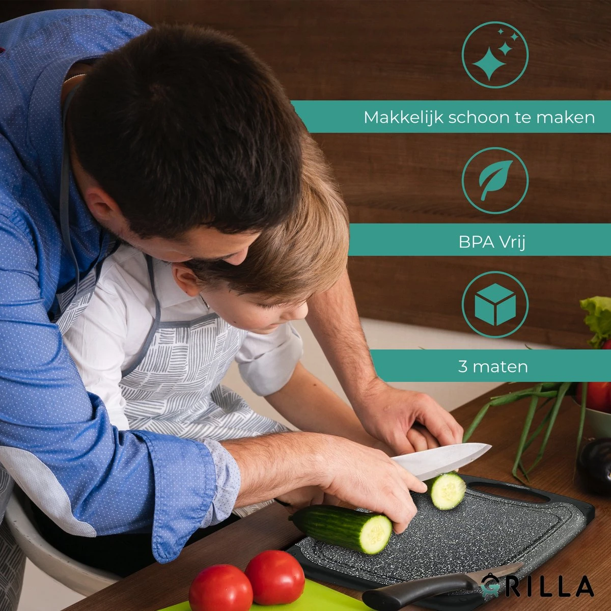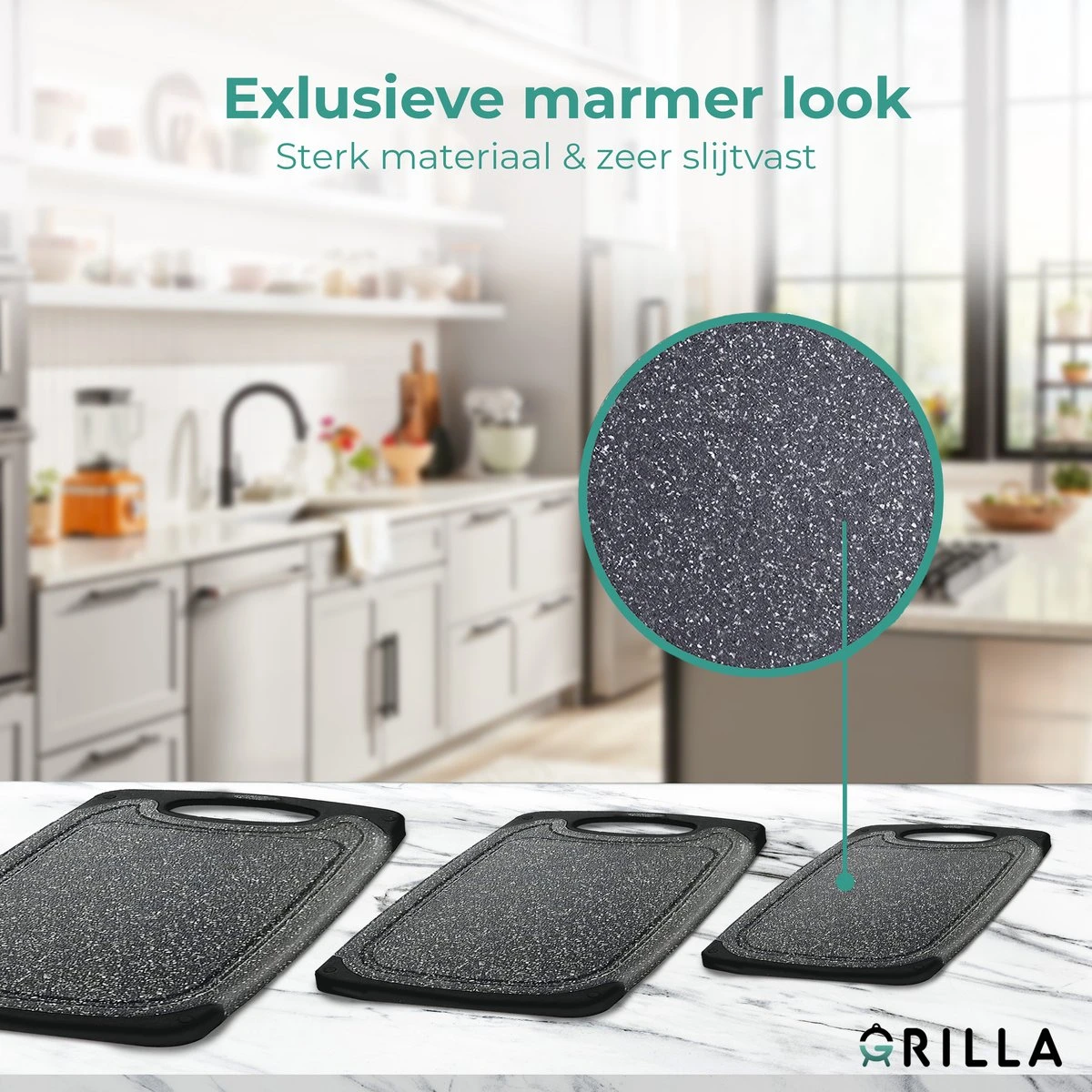 Grilla Snijplankenset – 3 Stuks – Marmer Look – Snijplank Set Kunststof